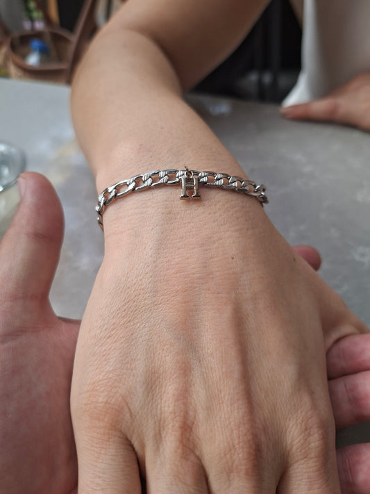 Kişiye Özel Yazılı Charm ve Harfli Çift Bilekliği (2 li Set)