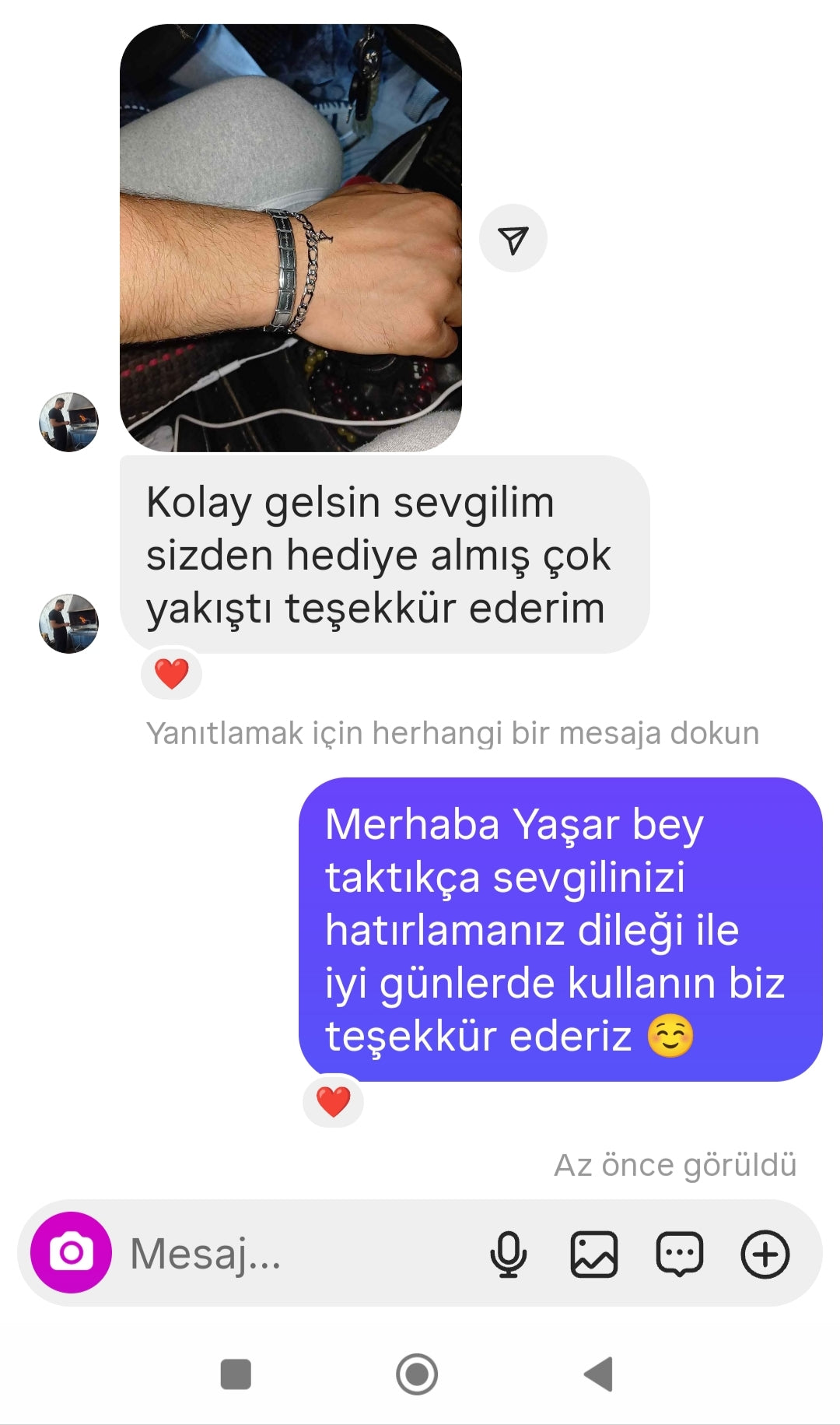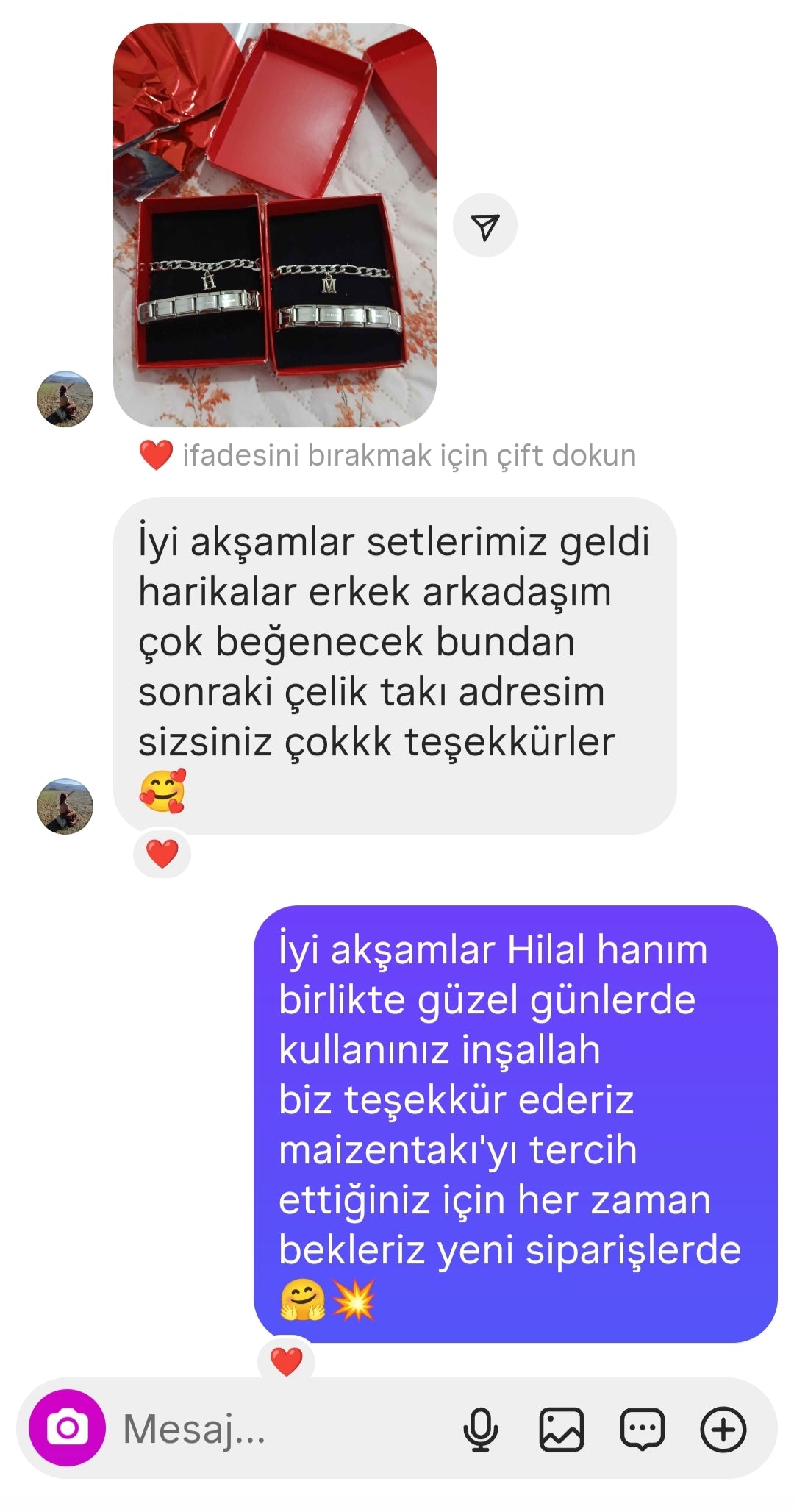 Bizim için takı satmak sadece bir ürün göndermek değildir. Rakiplerimizin çoğu sıradan, kısa ömürlü ve toplu üretim ürünler sunarken biz; yüksek kaliteli paslanmaz çelikten, el emeğiyle özenle hazırlanmış ve kişiye özel tasarımlar üretiyoruz. Şık hediye kutusu, hızlı kargo ve satış sonrası desteğimizle müşterilerimize yalnızca bir takı değil; uzun yıllar değerini koruyacak anlamlı bir deneyim sunuyoruz. Kısacası rakipler ucuzlukla öne çıkmaya çalışırken biz kalite, güven ve özel hissettirmeyle fark yaratıyoruz.